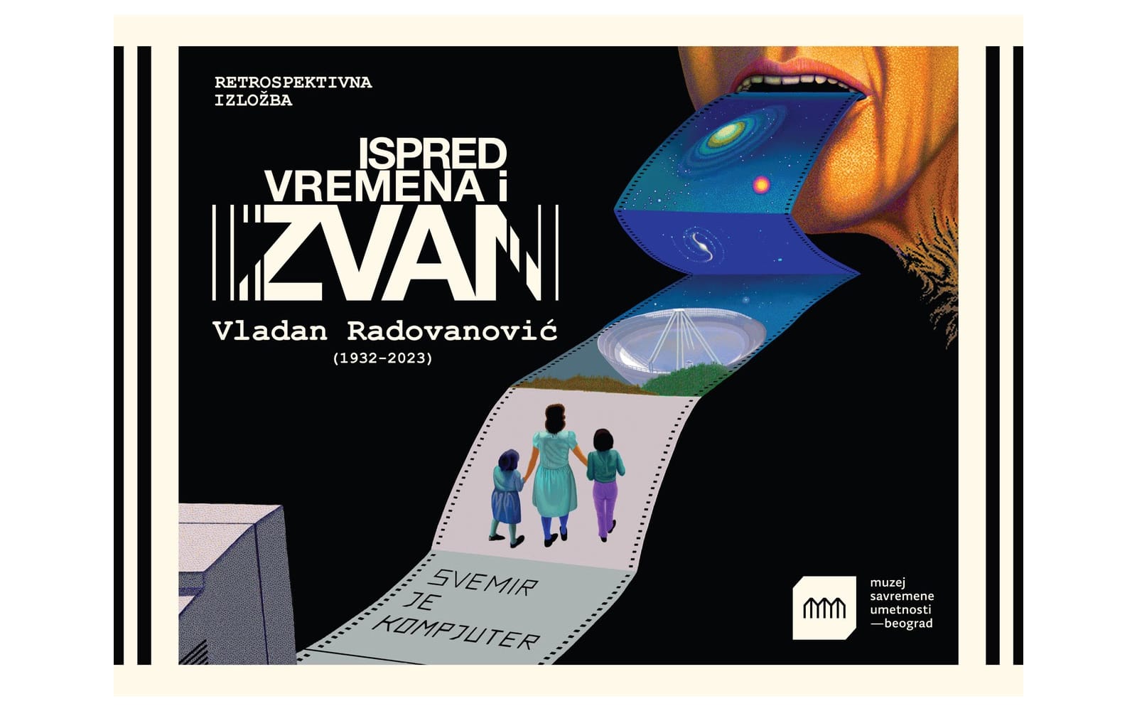 U četvrtak 28. marta u Muzeju savremene umetnosti je otvorena retrospektivna izložba „Ispred vremena i izvan“ Vladana Radovanovića, nedavno preminulog višemedijskog umetnika i jednog od najznačajnijeg domaćih savremenih kompozitora. Izložba predstavlja pregled njegovog dugogodišnjeg stvaralaštva u mnogobrojnim oblastima umetnosti i novog čitanja autorovog značaja u kontekstu avangardnih tendencija i praksi srpske umetnosti druge polovine prošlog i prvih decenija 21. veka.